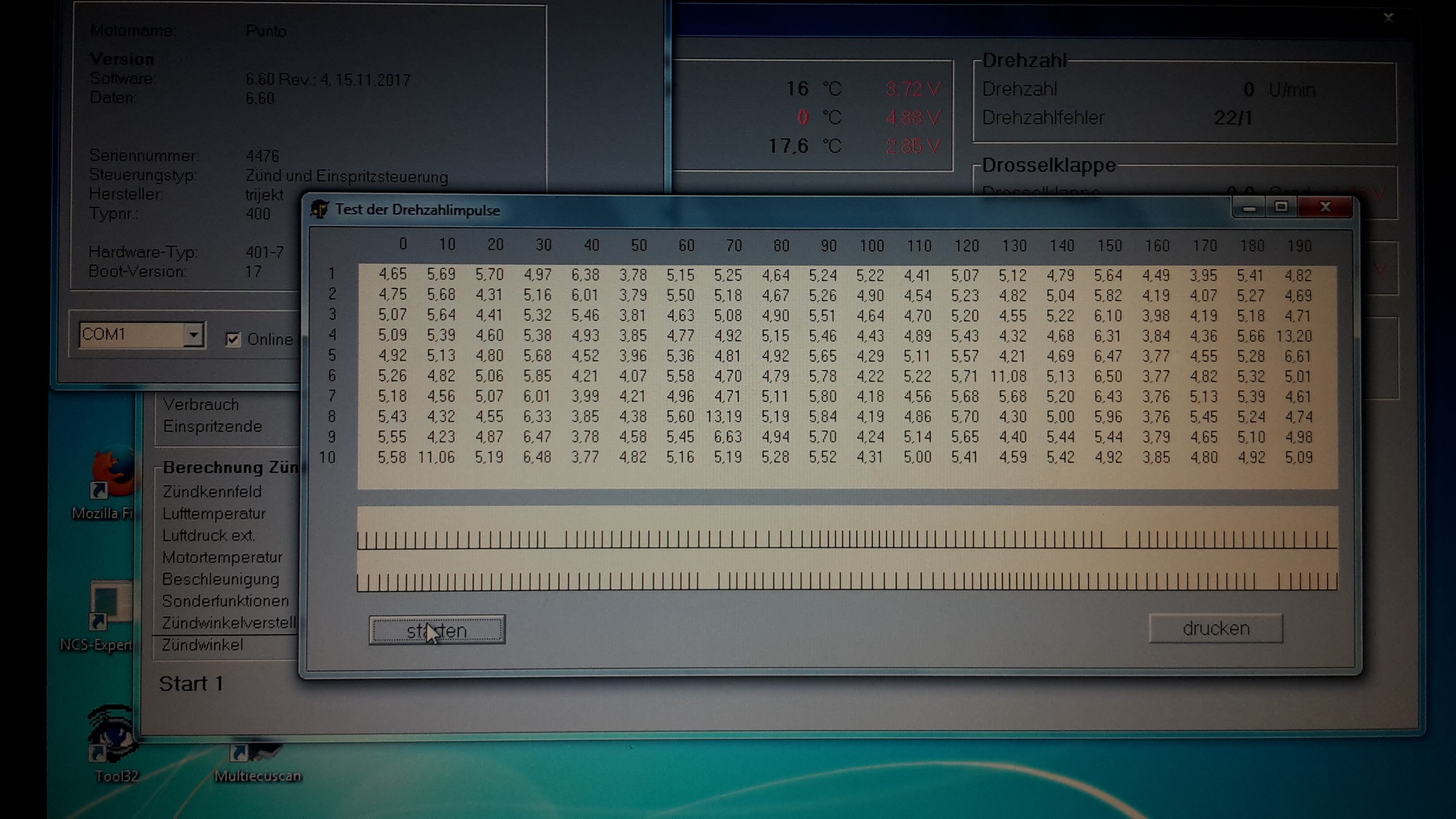 Hallo, hab jetzt mein Steuergerät soweit verkabelt und die einstelldaten eingegeben... Drehzahl, Drosselklappenpoti usw. bekomme ich signal.. Aber ich habe keinen Zündfunken. Auch an den Kabeln der Zündausgänge liegen nur max. 0,02V an. Wann gibt das Trijekt das Signal? Braucht es dafür bestimmte We...