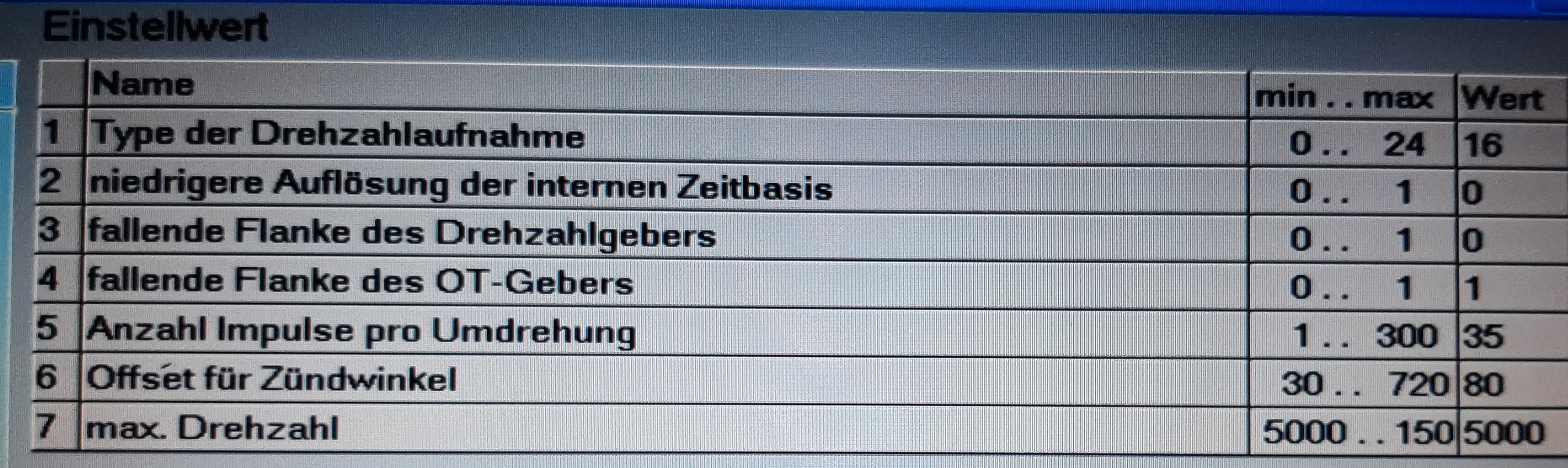 Die Drehzahlerfassung habe ich auf Typ 16 umgestellt!