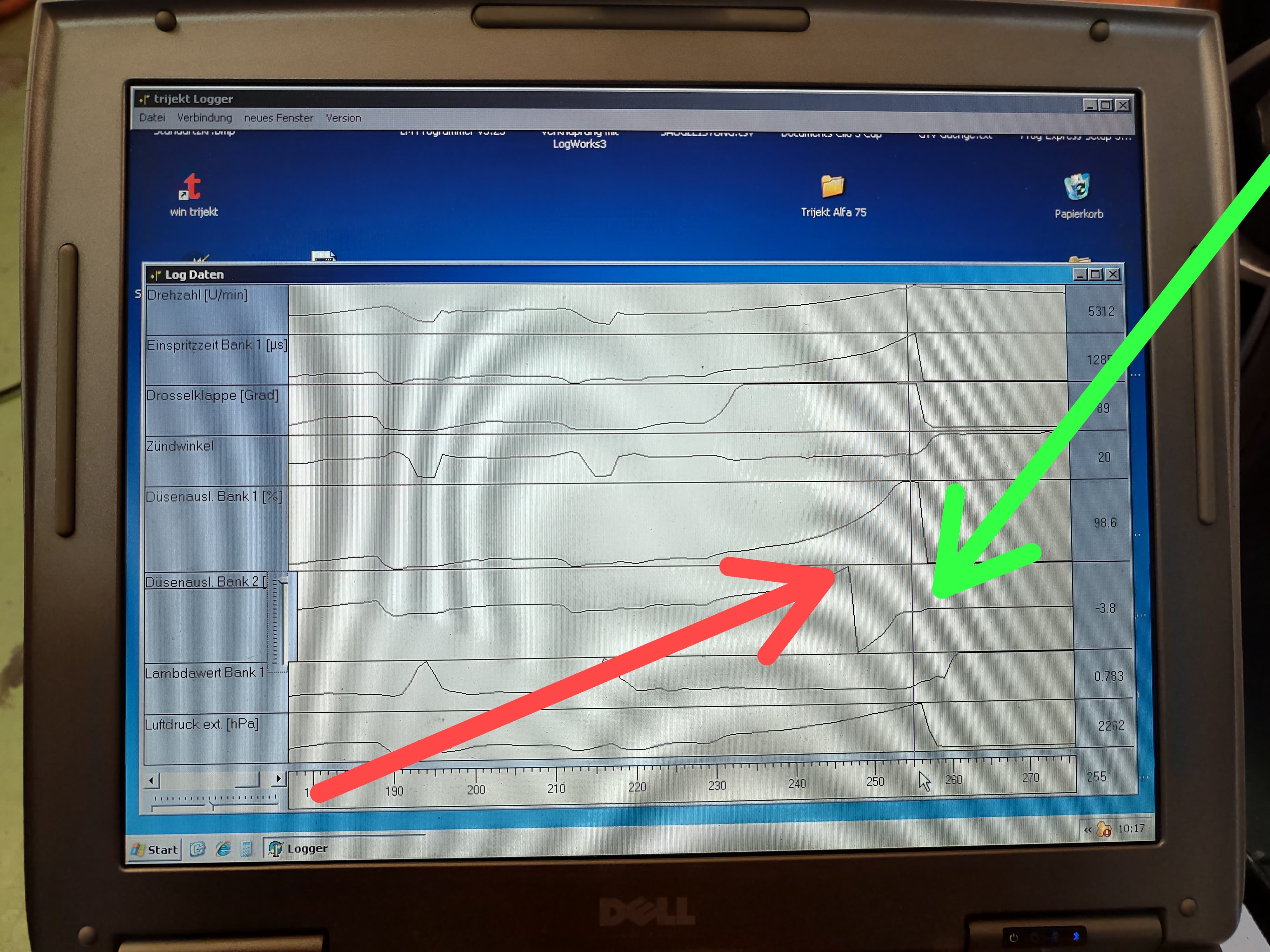 Im logg sieht man unter Volllast, dass bis zu einer gewissen Drehzahl die Düsenauslastung in % bei beiden Bänken gleich ansteigt.
